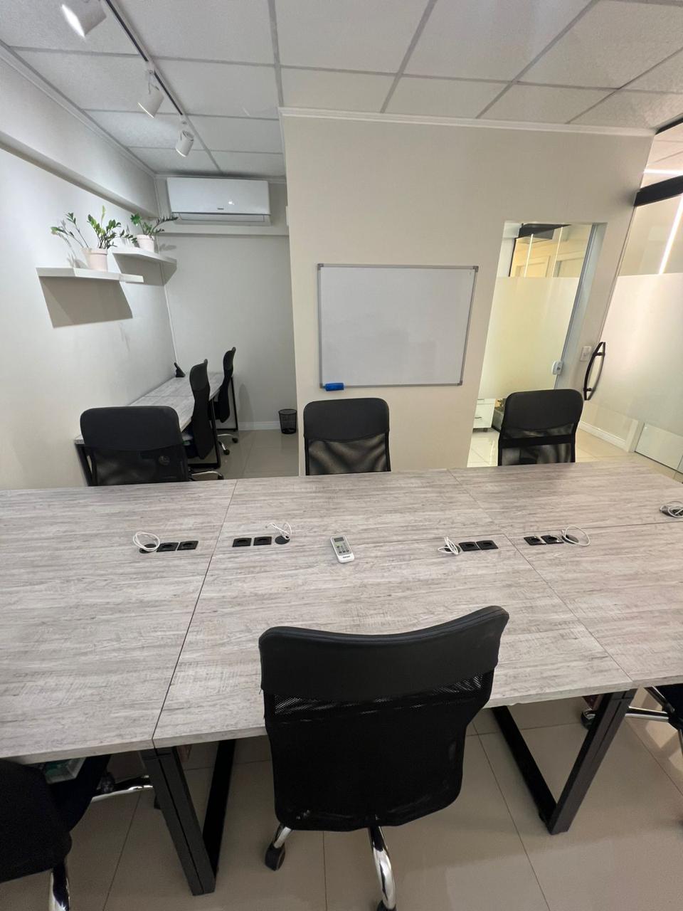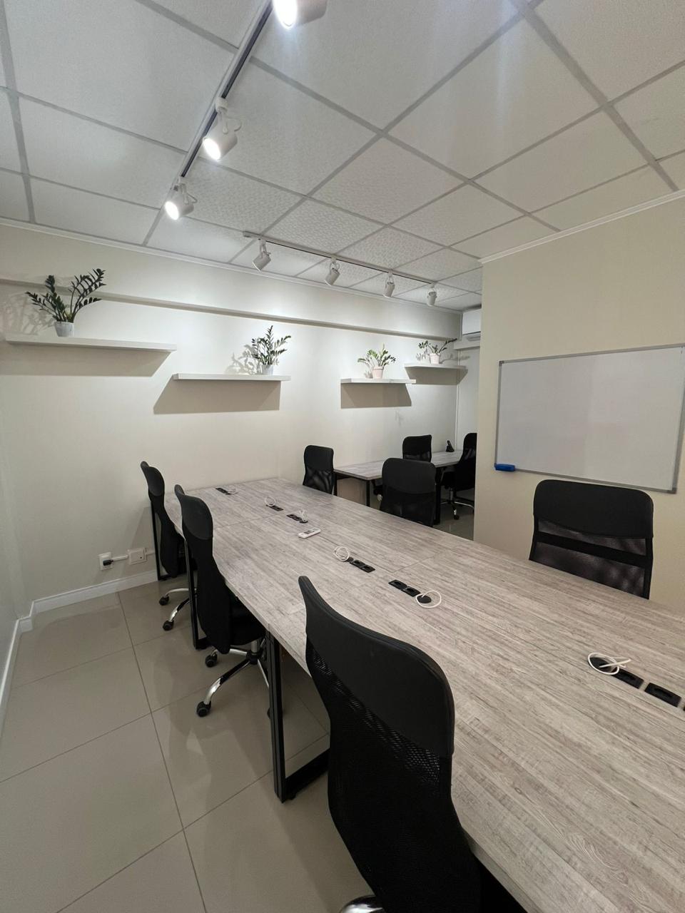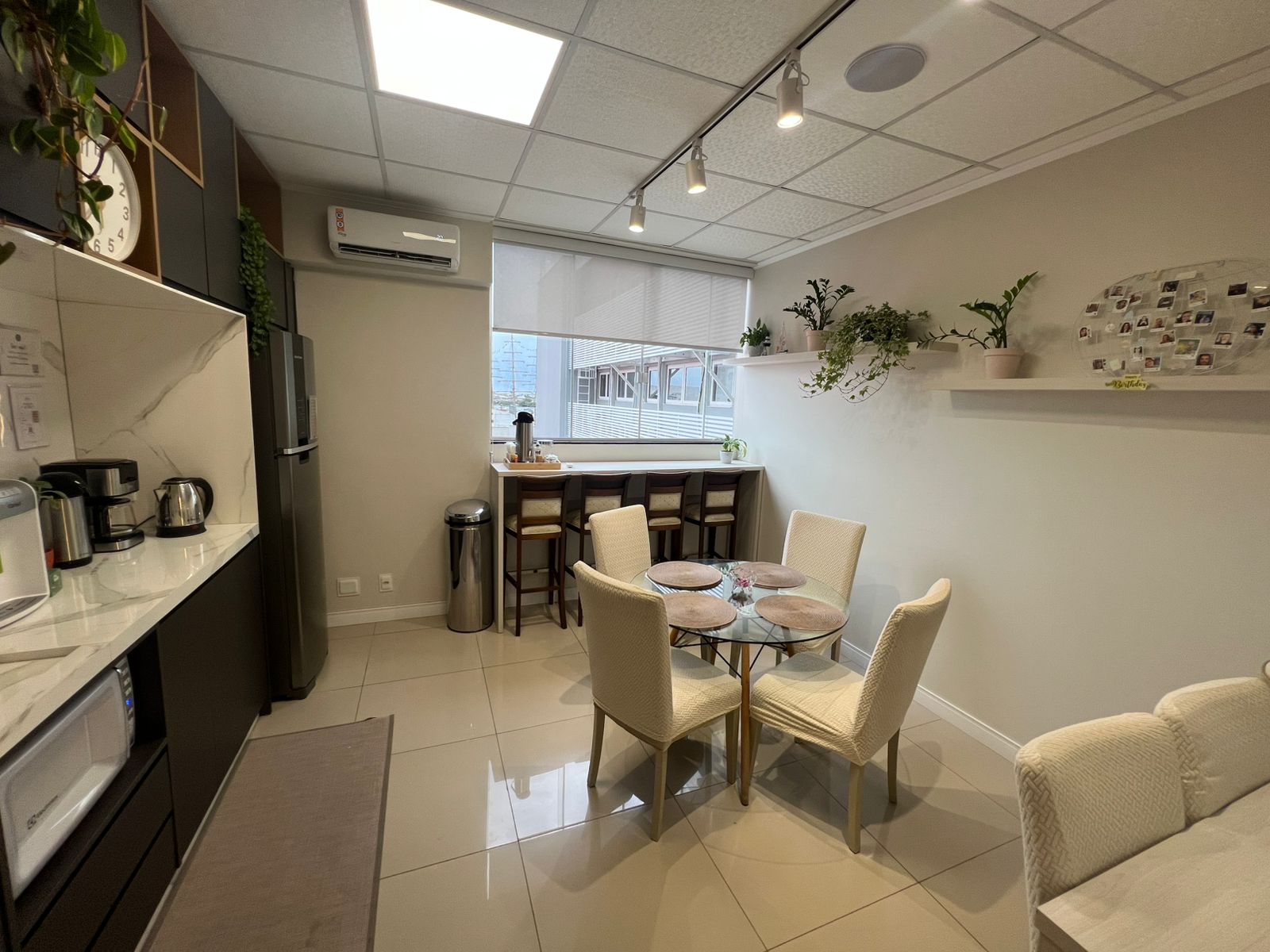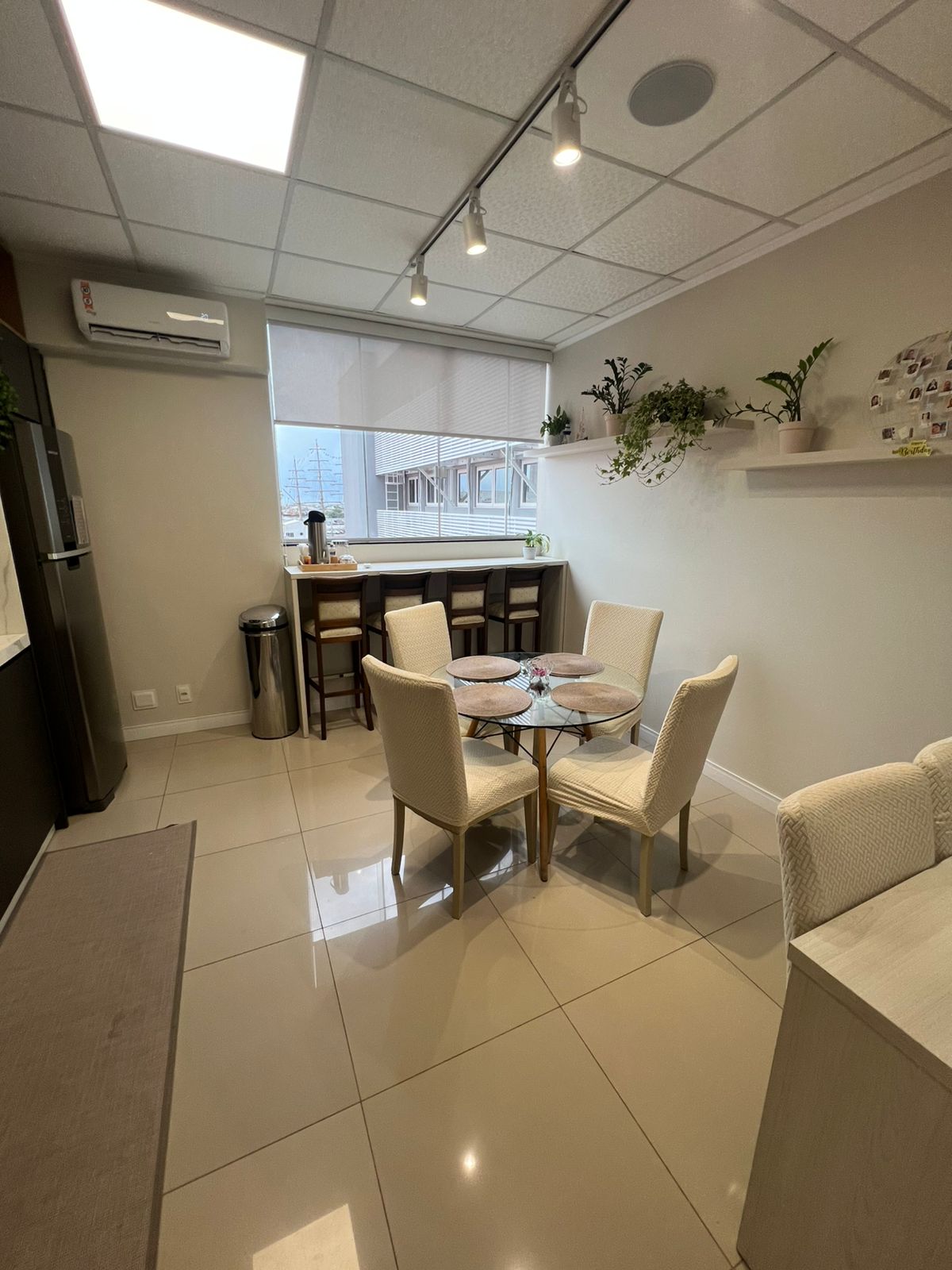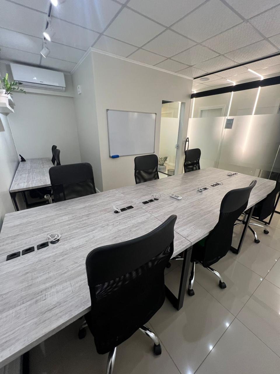 - Sala de reunião equipada — com TV, climatização, isolamento acústico, porta antirruído e cadeiras confortáveis