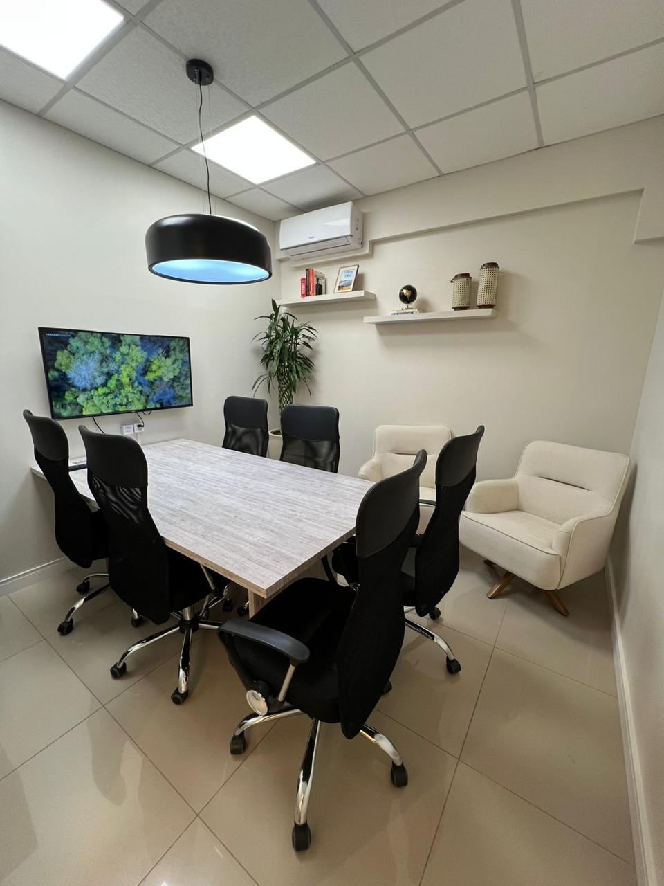 Espaço versátil, ideal para reuniões estratégicas, treinamentos e apresentações profissionais. Conforto, funcionalidade e estrutura para que seus encontros corporativos sejam produtivos e memoráveis.